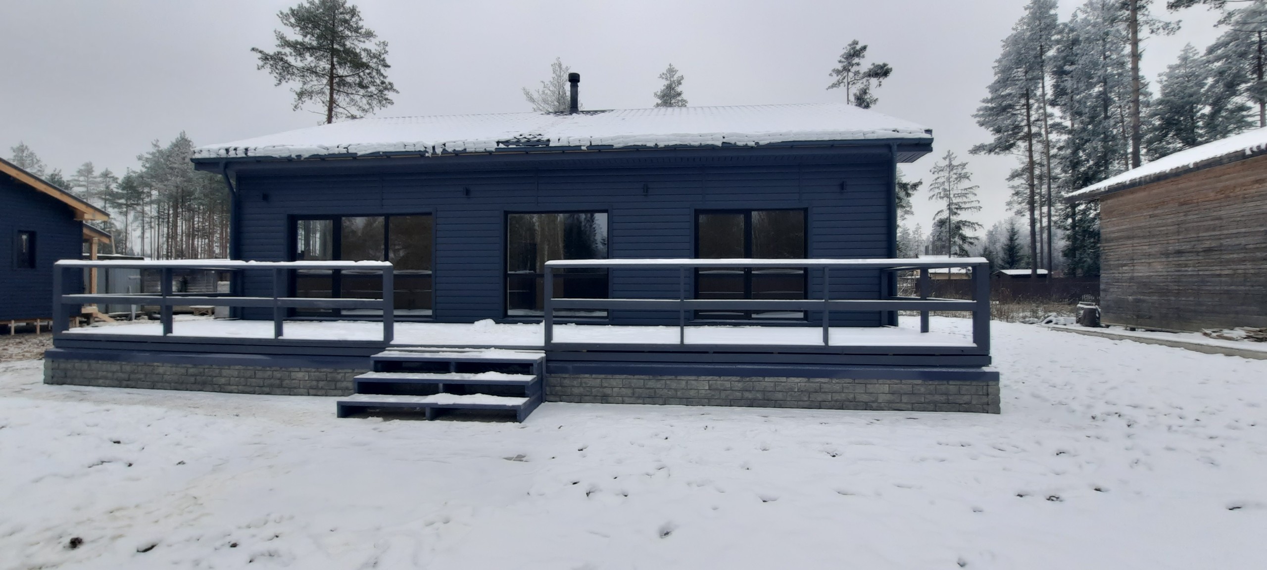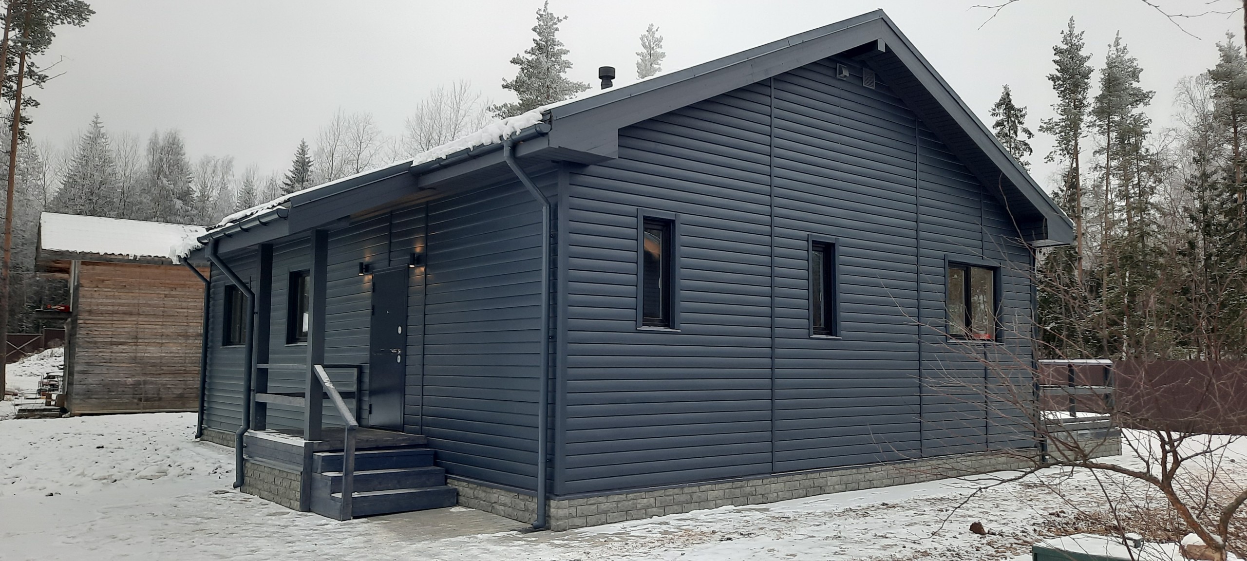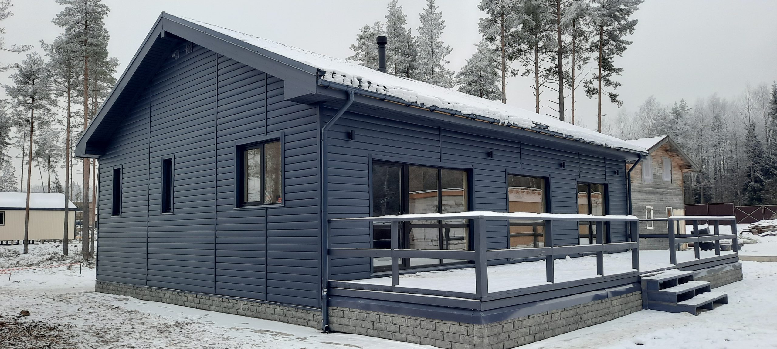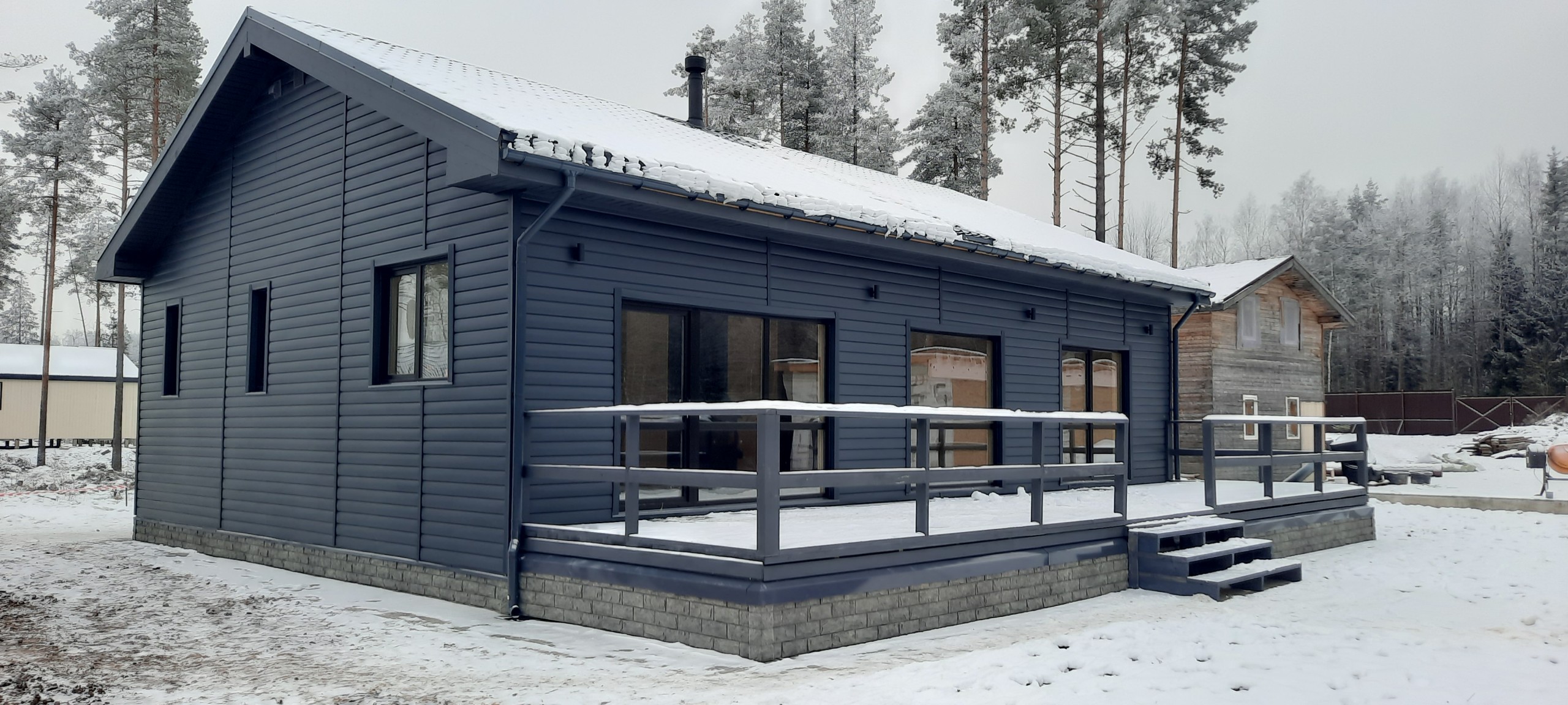 Фасад выполнен в современном стиле ( сайдинг ) цоколь имитация искусственного камня. Большая открытая терраса .