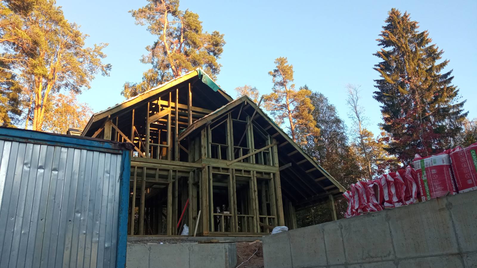 Стены – утеплитель 150мм,стены , потолок внутри помещения — имитация бруса , вагонка.
