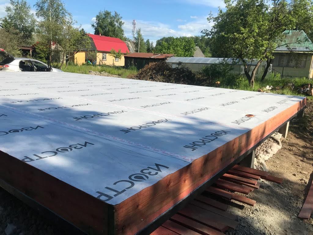 Фундамент – свайно-забивной 150-150 , утепление 200 мм базальтовой ватой. Стяжка.